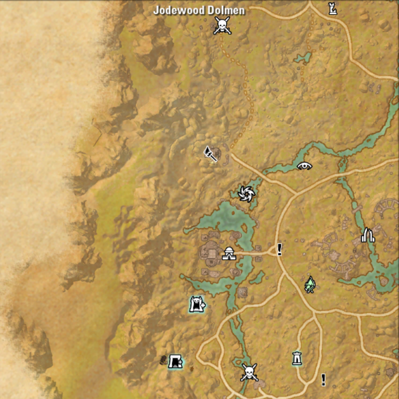 Reapers March treasure map locations are indicated on the map below. This area was originally designed for players levels 37-42 but has become Battle Leveled with One Tamriel. Southwestern Reapers March in vicinity of POIs like.